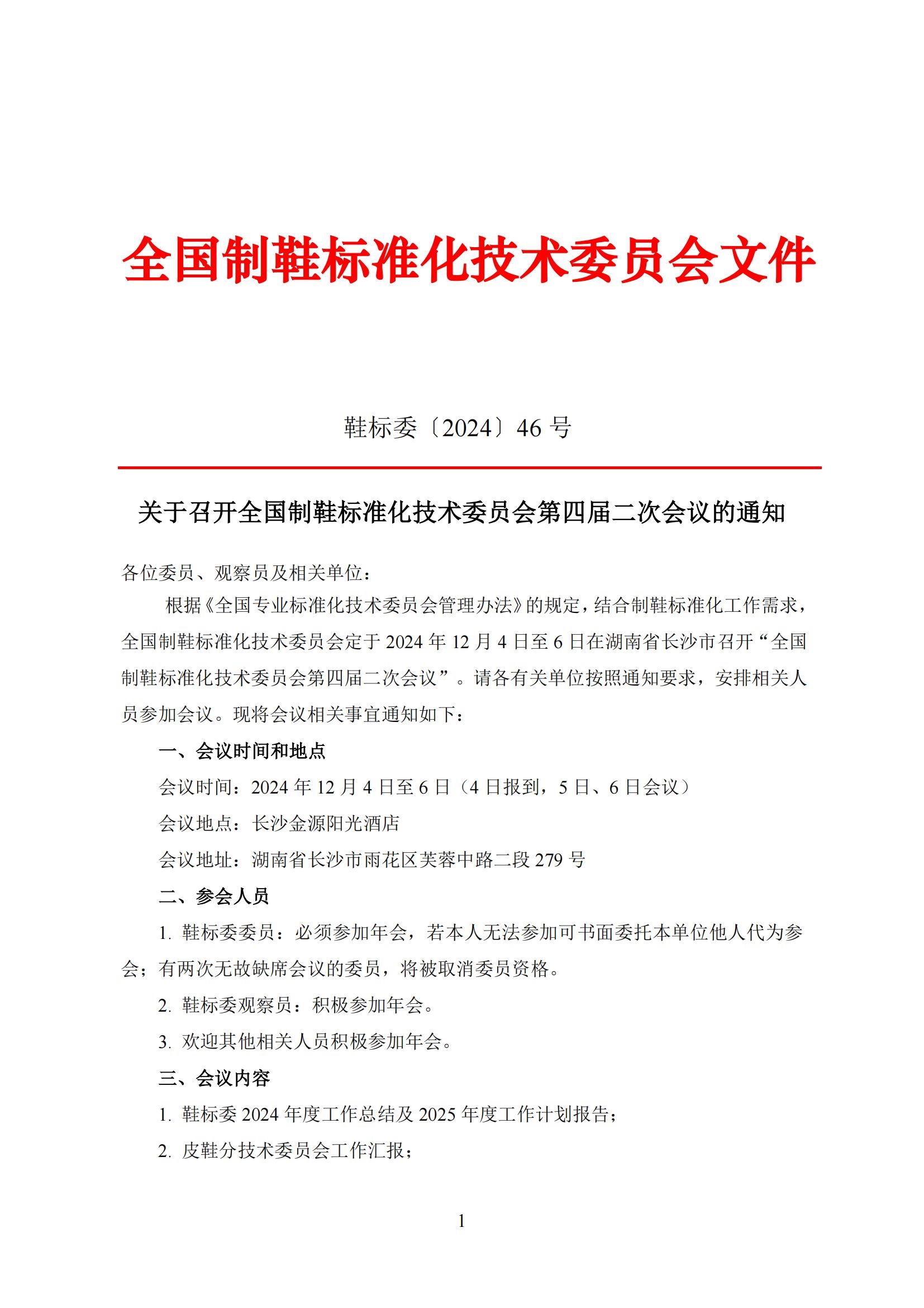 附件:關(guān)于召開全國制鞋標(biāo)準(zhǔn)化技術(shù)委員會(huì)第四屆二次會(huì)議的通知