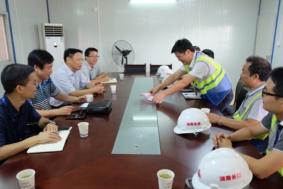 7月4日,氣溫陡升,酷暑難耐。長沙公司黨委副書記、副總經(jīng)理、長順公司董事長潘祥明等一行代表工程公司領(lǐng)導(dǎo)層、公司工會(huì)到達(dá)長沙地鐵3號(hào)線、瀏陽河人行景觀橋等抗洪救災(zāi)前線項(xiàng)目部進(jìn)行慰問。受暴雨影響,長沙多處封路,車輛禁行,潘總等頂著烈日徒步數(shù)里走進(jìn)各工程現(xiàn)場,檢查防汛措施落實(shí)情況。