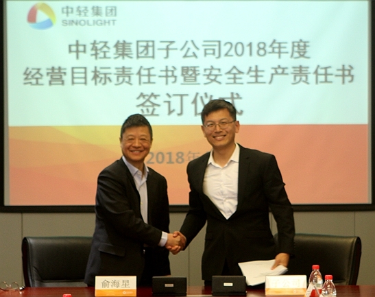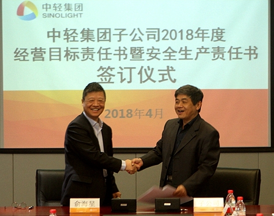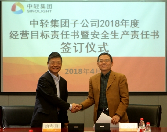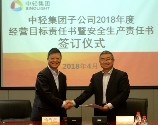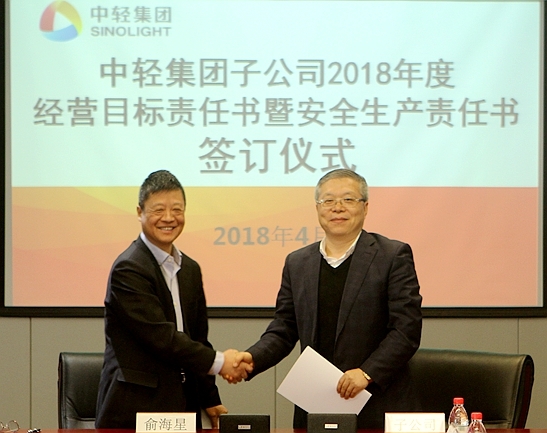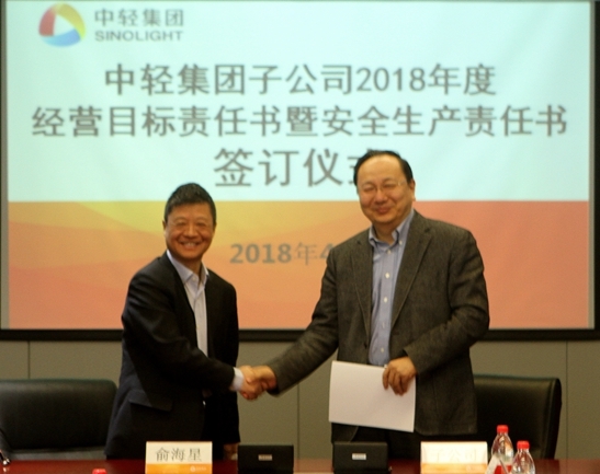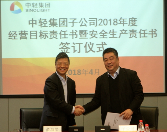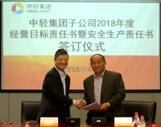 此次經(jīng)營目標(biāo)責(zé)任書和安全生產(chǎn)責(zé)任書的簽訂是對中輕集團(tuán)2018年總體生產(chǎn)經(jīng)營任務(wù)和安全生產(chǎn)任務(wù)的貫徹和落實(shí)。