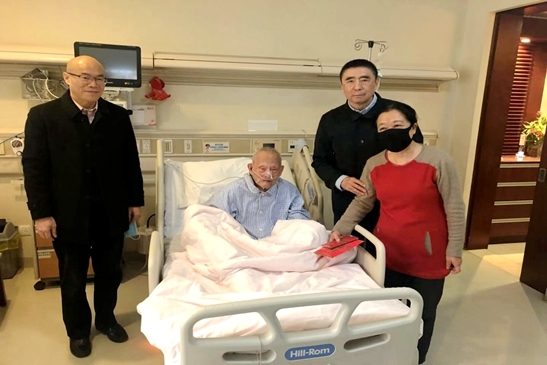 當(dāng)日下午,徐念沙一行前往北京醫(yī)院看望朱康同志,與他問(wèn)健康、話家常,十分關(guān)切地詢問(wèn)了百歲老人日常起居、照料等事宜,并為他送上慰問(wèn)金和慰問(wèn)品,衷心祝福他新年快樂(lè),健康長(zhǎng)壽。