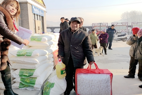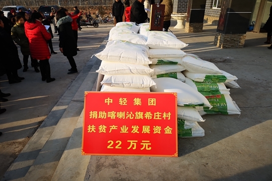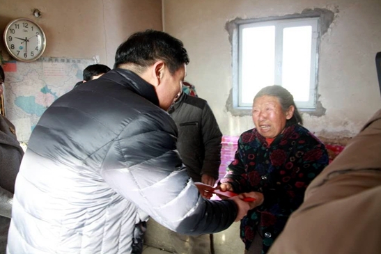 24日清晨,在副旗長遲亞玲等旗有關(guān)負(fù)責(zé)同志陪同下,慰問組赴王爺府鎮(zhèn)希莊村,代表中輕集團(tuán)向希莊村捐贈產(chǎn)業(yè)扶貧資金22萬元,并為70歲以上老人送上米、面、油和保暖棉被等物資。王珂靈在寒冬中發(fā)表熱情洋溢的講話,傳遞中輕集團(tuán)黨委的深情厚誼,溫暖了貧困群眾的心田。