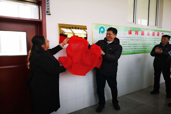隨后,慰問組來到王爺府鎮(zhèn)蒙古族學(xué)校,參加保利集團(tuán)·中輕集團(tuán)“保利愛心圖書館”揭牌儀式。中輕集團(tuán)總經(jīng)理助理、黨委辦公室主任肖金龍代表集團(tuán)公司為圖書館揭牌,并捐贈價值1萬元的閱覽桌椅和4000冊愛心圖書。