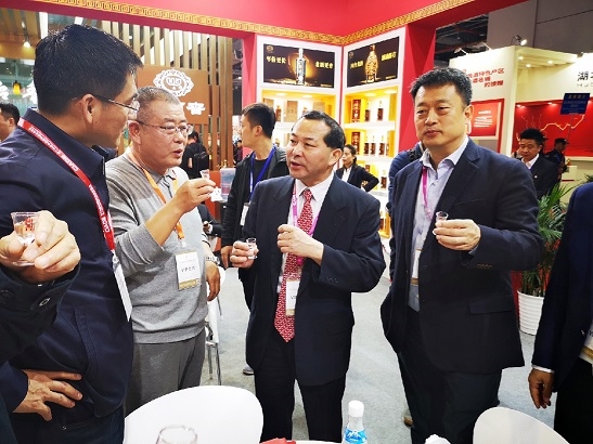 郭建全一行參觀展會(huì),與食品院有技術(shù)合作的五糧液、酒鬼酒、國(guó)臺(tái)酒、釣魚(yú)臺(tái)酒、秦含章酒、梁大師等企業(yè)負(fù)責(zé)人深入溝通服務(wù)合作。