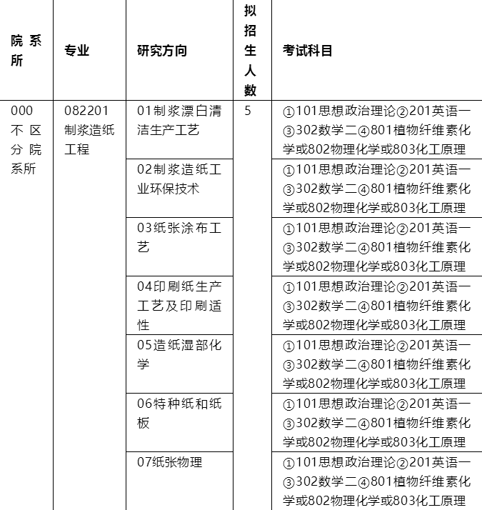 注:中國制漿造紙研究院有限公司二〇二〇年碩士研究生招生專業(yè)目錄