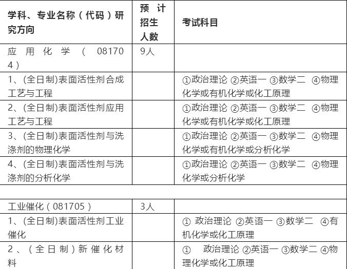2020年預計招收全日制碩士研究生12名,應用化學專業(yè)9人(全日制)、工業(yè)催化專業(yè)3人(全日制)。