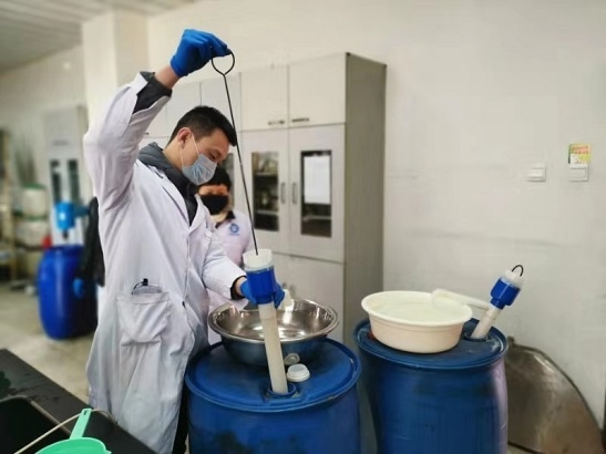 日化院表面活性劑重點實驗室副主任臺秀梅說:“接到聯(lián)防聯(lián)治通知后,課題組成員都一呼即應(yīng),加班加點,在實驗室利用平時積累的配方配置出1200公斤消毒劑,通過1比100稀釋,就可以兌出120噸的消毒液,為疫情防控做出我們自己的貢獻(xiàn)。”