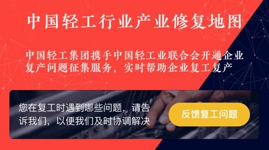 為切實幫助輕工行業(yè)企業(yè)解決復工復產(chǎn)過程中的重點、難點、堵點,中國輕工集團有限公司(中輕集團)攜手中國輕工業(yè)聯(lián)合會(中輕聯(lián))推出產(chǎn)業(yè)修復地圖服務,匯聚全行業(yè)政策、預測、實時供需等大數(shù)據(jù),依托中輕集團的強大科研實力和中輕聯(lián)專業(yè)的行業(yè)指導咨詢能力,為企業(yè)搭建信息匯聚、風險防控、發(fā)展咨詢、資源調配的平臺,從而疏堵解痛,加速企業(yè)達產(chǎn)滿產(chǎn)。