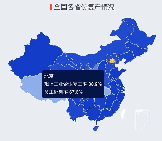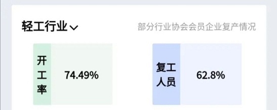 此外,小程序在首頁展示了收集到的各省份以及輕工各行業(yè)整體復工情況數(shù)據(jù),方便企業(yè)增進對行業(yè)的直觀了解,加深對行業(yè)的深度認識,從而對企業(yè)自身有更加明晰的判斷。