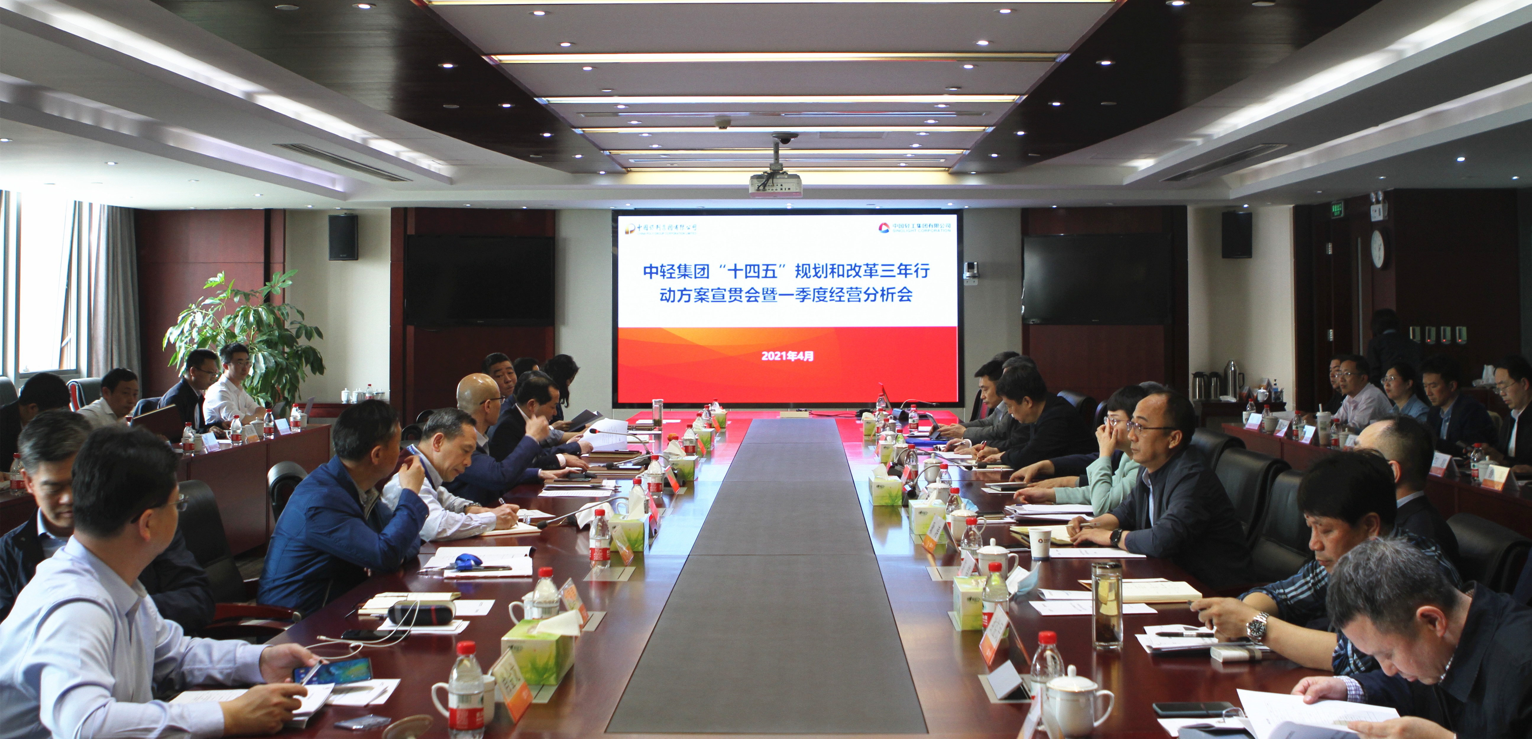 2021年4月25日,中輕集團(tuán)在京組織召開“十四五”規(guī)劃和改革三年行動方案宣貫會暨一季度經(jīng)營分析會。中輕集團(tuán)領(lǐng)導(dǎo)班子、總部各部室負(fù)責(zé)人、子公司主要領(lǐng)導(dǎo)和相關(guān)工作分管領(lǐng)導(dǎo)及相關(guān)部門負(fù)責(zé)人參加會議。