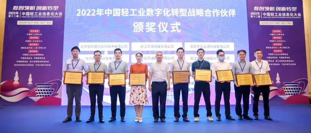 7月27日,由中國輕工業(yè)聯(lián)合會(huì)主辦的“數(shù)智領(lǐng)航 創(chuàng)新轉(zhuǎn)型”2022年第十二屆中國輕工業(yè)信息化大會(huì)在杭州舉辦。會(huì)上隆重發(fā)布“2022年中國輕工業(yè)數(shù)字化轉(zhuǎn)型先進(jìn)單位”榜單和“2022年中國輕工業(yè)數(shù)字化轉(zhuǎn)型領(lǐng)軍人物”榜單。