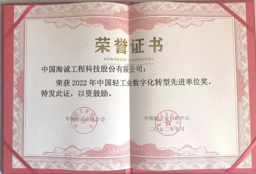 保利中輕中國海誠工程科技股份有限公司(簡稱中國海誠)、中國海誠廣州公司、中輕長泰(長沙)智能科技股份有限公司(簡稱中輕長泰)獲中國輕工業(yè)數(shù)字化轉(zhuǎn)型先進(jìn)單位稱號(hào);中國海誠總部EIM數(shù)創(chuàng)中心總經(jīng)理潘志祥、廣州公司董事長羅軍獲中國輕工業(yè)數(shù)字化轉(zhuǎn)型先進(jìn)個(gè)人稱號(hào)。