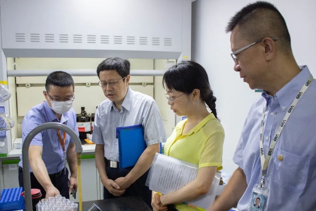 調(diào)研期間,王珂靈一行參觀了普研標(biāo)準(zhǔn)綜合檢測(cè)中心、醫(yī)學(xué)檢測(cè)中心、環(huán)境檢測(cè)中心及綜合辦公區(qū),詳細(xì)了解各實(shí)驗(yàn)室操作情況,對(duì)精益管理工作進(jìn)行指導(dǎo),并與普研標(biāo)準(zhǔn)領(lǐng)導(dǎo)班子成員進(jìn)行交談。
