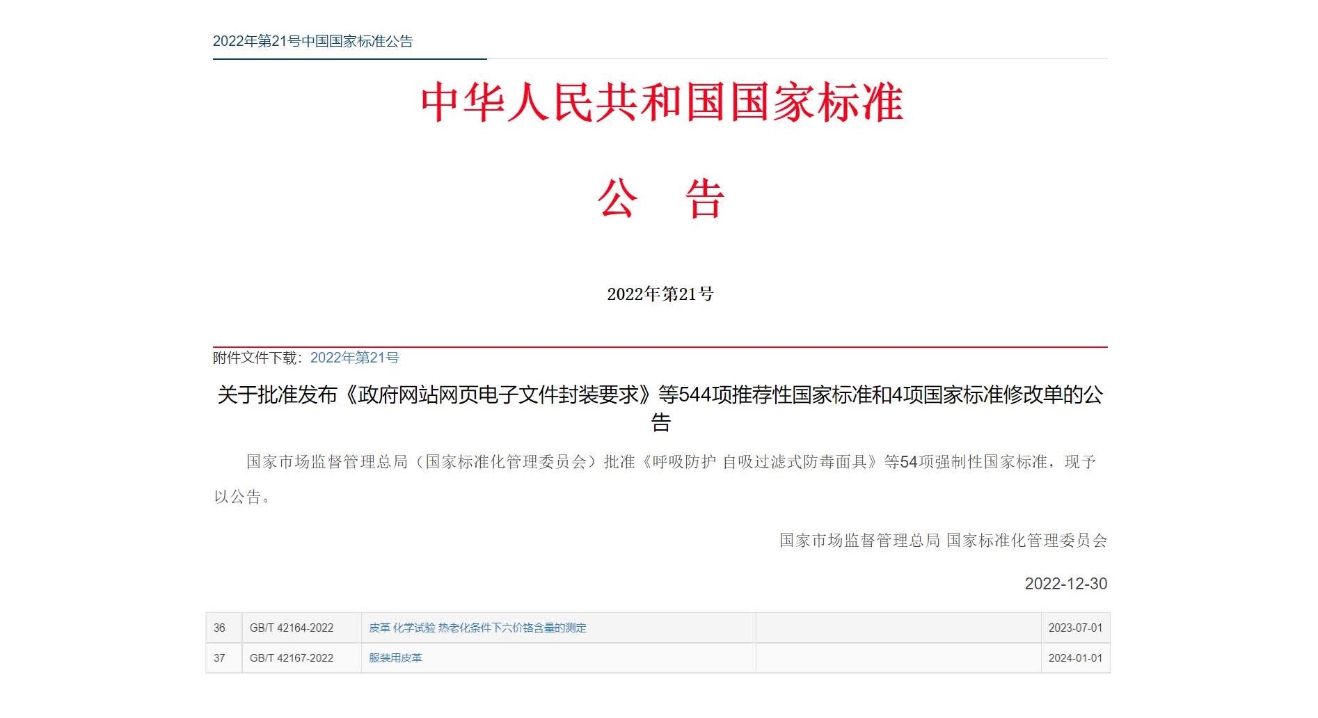 中國皮革制鞋研究院、中輕檢驗主導(dǎo)制修訂的國家標(biāo)準(zhǔn)發(fā)布