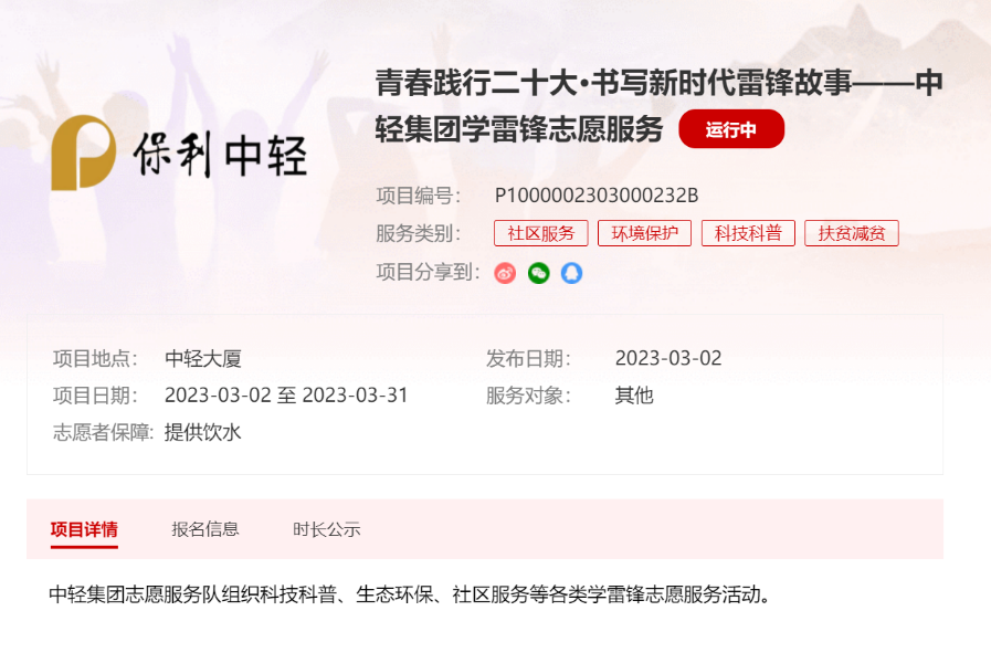 保利中輕總部組織建立青年志愿服務(wù)隊(duì),牽頭開展學(xué)雷鋒系列主題活動(dòng)。指導(dǎo)廣大團(tuán)員青年進(jìn)行注冊(cè)并加入團(tuán)隊(duì),號(hào)召?gòu)V大團(tuán)員青年立足崗位、敬業(yè)奉獻(xiàn),接續(xù)傳承服務(wù)人民、助人為樂的雷鋒精神。