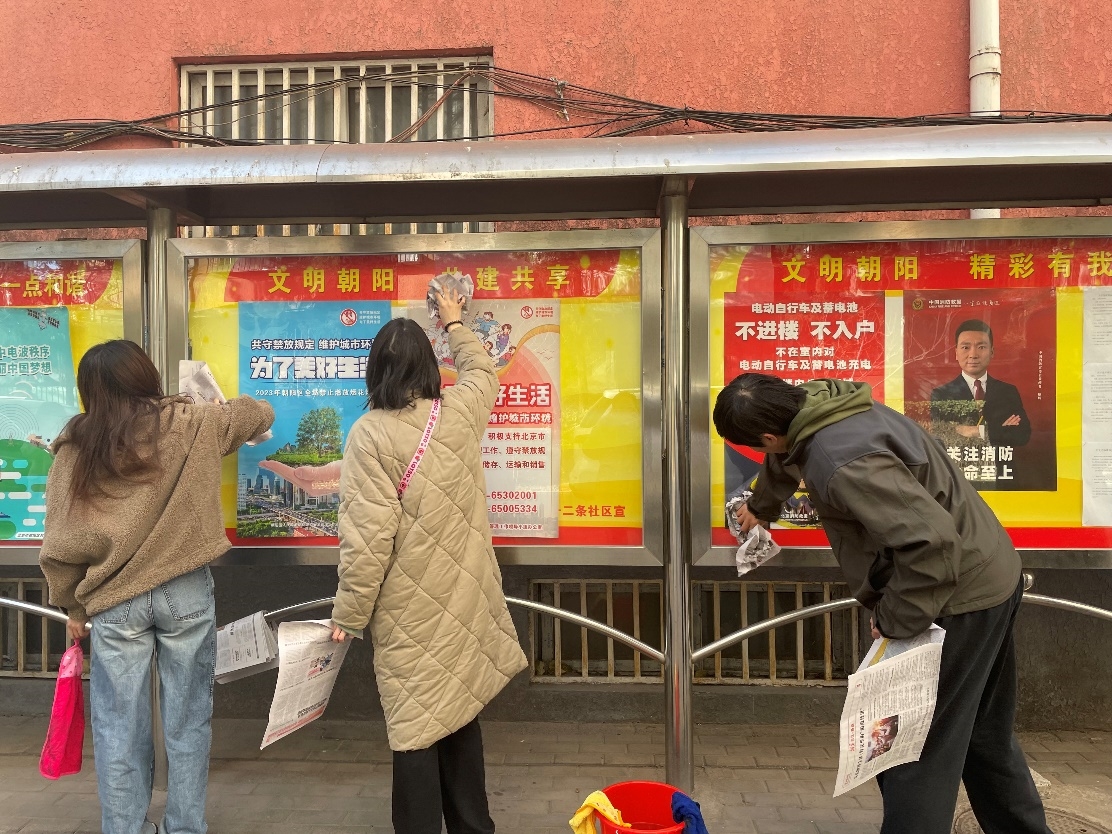 中國(guó)皮革制鞋研究院團(tuán)支部組織團(tuán)員青年走進(jìn)芳園里社區(qū)開展大掃除活動(dòng)。針對(duì)老舊宿舍樓梯常年積灰、住戶不小心灑落的生活垃圾進(jìn)行重點(diǎn)打掃,還原樓道干凈整潔。