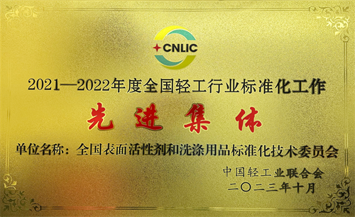 中國(guó)日用化學(xué)研究院作為秘書(shū)處承擔(dān)單位運(yùn)營(yíng)的全國(guó)表面活性劑和洗滌用品標(biāo)準(zhǔn)化技術(shù)委員會(huì)榮獲“2021-2022年度全國(guó)輕工行業(yè)標(biāo)準(zhǔn)化工作先進(jìn)集體”稱號(hào)。