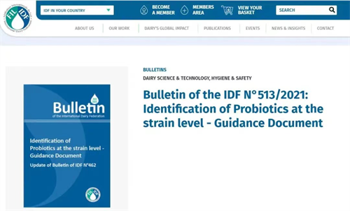 2021年12月15日,國際乳品聯(lián)合會(IDF)正式發(fā)布由中國食品院牽頭修訂的《IDF公報N°513/2021 益生菌菌株水平鑒定指導(dǎo)文件》。