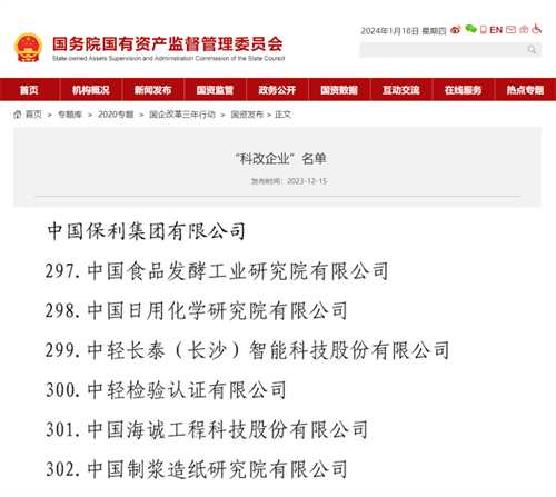中國(guó)制漿造紙研究院新入圍國(guó)務(wù)院國(guó)資委“科改企業(yè)”名單,保利中輕科改企業(yè)增至6家。在國(guó)務(wù)院國(guó)資委年度專項(xiàng)考核中,中國(guó)食品發(fā)酵工業(yè)研究院、中輕檢驗(yàn)被評(píng)為“標(biāo)桿企業(yè)”,中國(guó)日用化學(xué)研究院、中輕長(zhǎng)泰被評(píng)為“優(yōu)秀企業(yè)”。