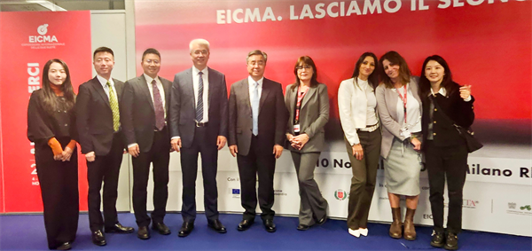 展會期間,安勝杰一行分別與同期出席展會的中國駐米蘭總領事館經濟商務處耿協(xié)威參贊、潘源文領事,浙江省衢州市田俊副市長以及EICMA組委會相關負責同志深入交流。耿協(xié)威對中國企業(yè)發(fā)展及中輕展覽的組織工作給予充分肯定,并鼓勵大家繼續(xù)發(fā)揮優(yōu)勢,拓展國際市場,提升中國兩輪車行業(yè)在全球的影響力。田俊對雙方多次合作表示贊許,并誠邀中輕展覽加強與在衢企業(yè)的溝通交流,共同推動衢州產業(yè)發(fā)展。EICMA組委會負責人表示,中輕展覽擁有一支非常專業(yè)的業(yè)務團隊,雙方是親密無間的合作伙伴。