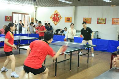 本次比賽共設(shè)團(tuán)體、男子單打、女子單打三個(gè)項(xiàng)目,由中輕集團(tuán)在京單位組隊(duì)參加。9月4日下午第一輪乒乓球團(tuán)體比賽,集團(tuán)8個(gè)在京單位(集團(tuán)本部、中國(guó)制漿造紙研究院及造紙開(kāi)發(fā)公司、中國(guó)食品發(fā)酵工業(yè)研究院、中國(guó)皮革和制鞋工業(yè)研究院、中國(guó)海誠(chéng)工程科技股份有限公司、中輕物產(chǎn)公司、中國(guó)食品工業(yè)(集團(tuán))公司、中國(guó)海誠(chéng)國(guó)際工程投資總院)派隊(duì)參加了比賽,比賽為單輪淘汰制,采取五局三勝,11分制,對(duì)陣情況由賽前各單位領(lǐng)隊(duì)抽簽產(chǎn)生。