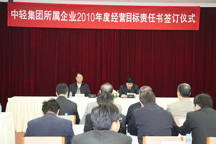 中國輕工集團(tuán)公司所屬企業(yè)2010年度經(jīng)營目標(biāo)責(zé)任書簽訂儀式于3月30日在集團(tuán)總部舉行,集團(tuán)公司領(lǐng)導(dǎo)、集團(tuán)公司部門負(fù)責(zé)人、二級企業(yè)主要負(fù)責(zé)人出席了儀式。