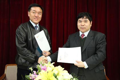 陳鄂生總經(jīng)理與皮革院院長楊承杰簽訂經(jīng)營目標(biāo)責(zé)任書