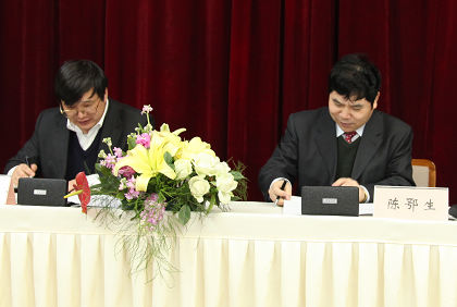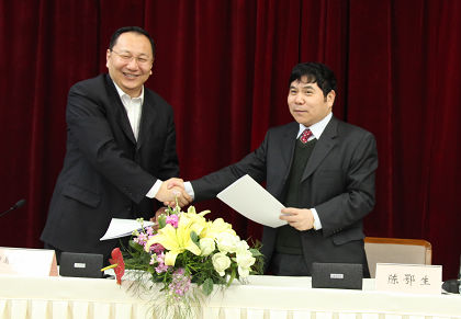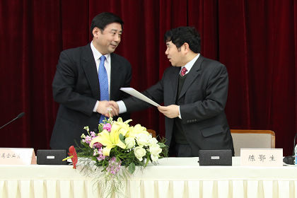 陳鄂生總經(jīng)理與日化院院長王萬緒簽訂經(jīng)營目標(biāo)責(zé)任書