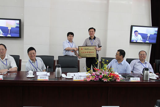 (陳鄂生董事長(zhǎng)向海誠(chéng)股份公司總裁嚴(yán)曉儉授先進(jìn)黨組織榮譽(yù)牌匾)