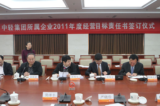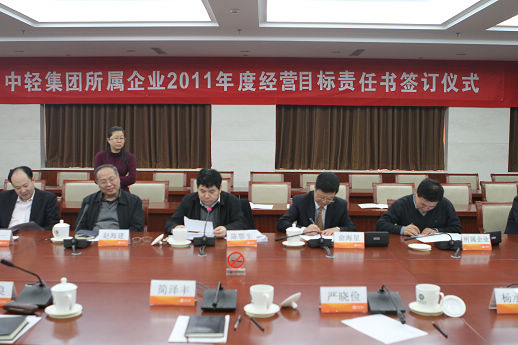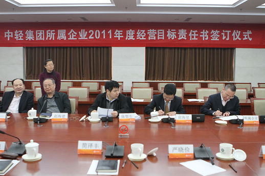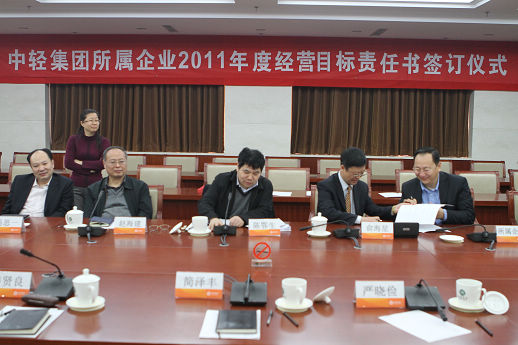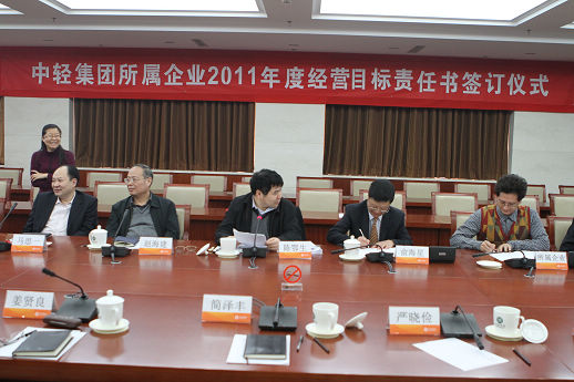 俞海星總經(jīng)理與中輕對(duì)外公司副總經(jīng)理王向陽(yáng)簽訂責(zé)任書