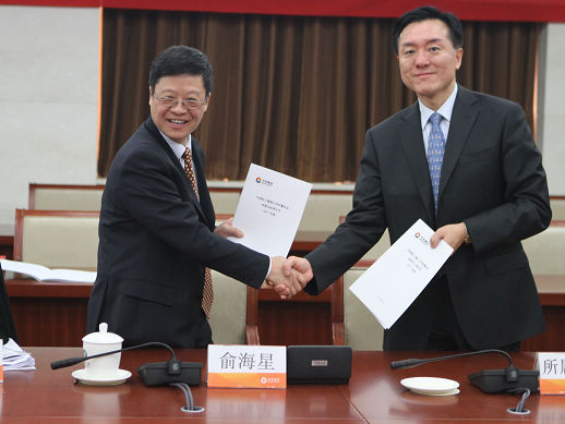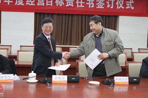 俞海星總經(jīng)理與海誠(chéng)股份總裁嚴(yán)曉儉簽訂責(zé)任書