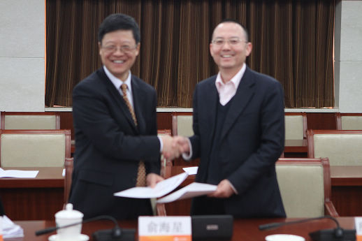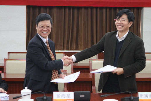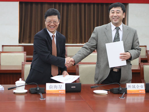 俞海星總經(jīng)理與日化院院長(zhǎng)王萬(wàn)緒簽訂責(zé)任書