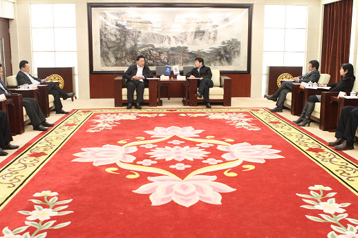 2011年4月13日上午,陳鄂生董事長(zhǎng)在集團(tuán)總部貴賓室會(huì)見(jiàn)了來(lái)訪(fǎng)的江蘇省徐州市委常委、新沂市委書(shū)記陳德榮、副市長(zhǎng)婁可亮等一行。