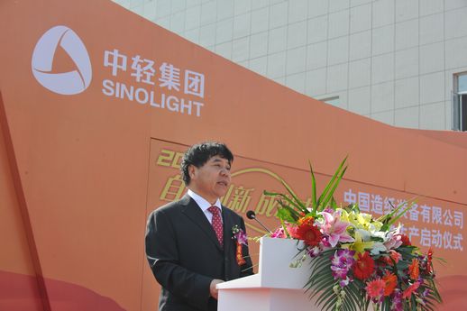 2012年10月23日,中國造紙裝備有限公司在其河北永清基地隆重舉行了以“自主創(chuàng)新 成就未來”為主題的“永清基地生產(chǎn)啟動儀式暨技術研討會”,向業(yè)界宣告了作為中國高端造紙裝備技術引領者正式亮相。國務院國資委監(jiān)事會主席尋寰中、中國輕工業(yè)聯(lián)合會副會長錢桂敬、廊坊市常務副市長蔣洪江、國家工信部規(guī)劃司副司長兼廊坊市副市長顧強、國家發(fā)改委產(chǎn)業(yè)協(xié)調司輕紡處處長曲美玉、中國工程院院士兼華南理工大學教授陳克復、中國造紙學會理事長陳學忠等出席了啟動儀式。集團公司董事長陳鄂生、總經(jīng)理俞海星、副總經(jīng)理馬思一、曹振雷出席了啟動儀式。