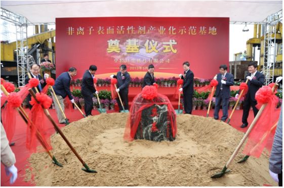2013年5月8日,日化院非離子表面活性劑產(chǎn)業(yè)化示范基地建設(shè)項目奠基儀式在上海市精細(xì)化工產(chǎn)業(yè)園區(qū)隆重舉行。集團(tuán)公司總經(jīng)理俞海星、副總經(jīng)理曹振雷、童云翔、上海金山區(qū)區(qū)長李躍旗、中共上海市金山區(qū)委副書記祝學(xué)軍、區(qū)委常委、紀(jì)委書記葛永東、副區(qū)長馬淮海、上海市精細(xì)化工產(chǎn)業(yè)園區(qū)管委會主任沈國忠等領(lǐng)導(dǎo)出席了奠基儀式。