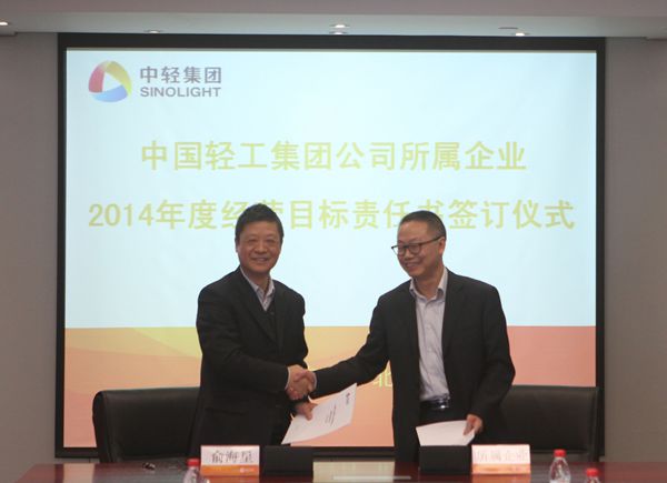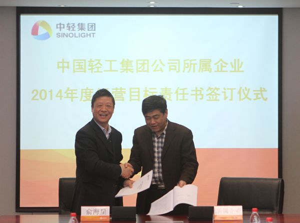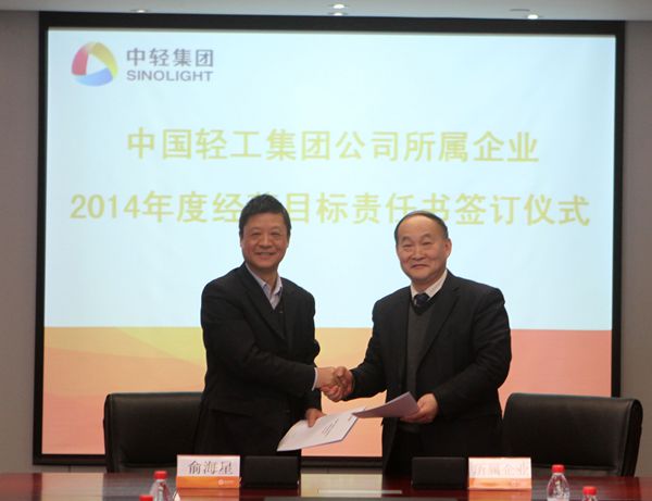 集團公司總經(jīng)理俞海星與中輕物產(chǎn)公司總經(jīng)理錢小林簽訂經(jīng)營目標責任書