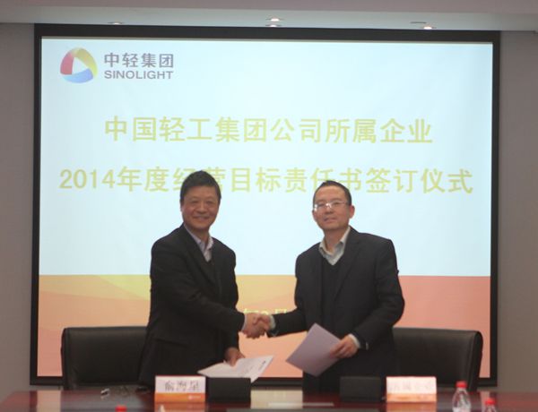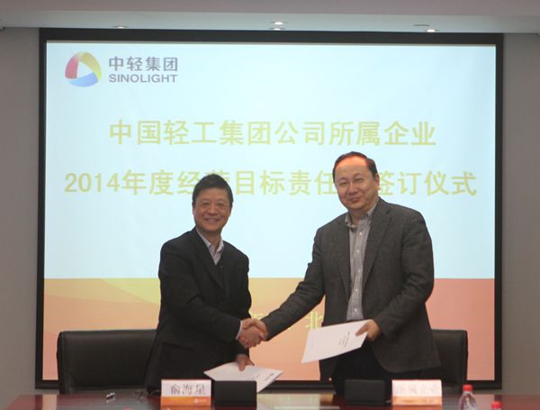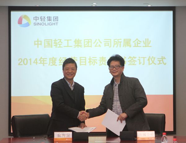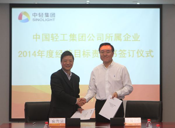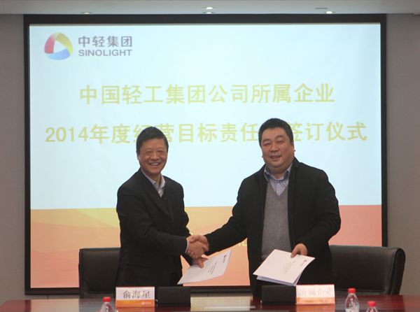 集團公司總經(jīng)理俞海星與中輕對外公司副總經(jīng)理馬江(代)簽訂經(jīng)營目標責任書