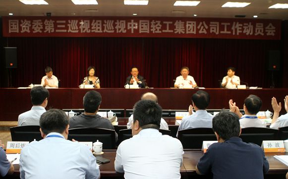 根據(jù)國務院國資委黨委統(tǒng)一部署,國資委第三巡視組近日進駐中國輕工集團公司(以下簡稱中輕集團)開展巡視。7月1日上午,國資委第三巡視組巡視中輕集團工作動員會召開。國資委第三巡視組組長韓修國就巡視工作作了講話,國資委巡視工作領(lǐng)導小組成員、巡視辦主任阮國平就配合做好巡視工作提出要求。中輕集團黨委書記、董事長陳鄂生主持會議并作表態(tài)發(fā)言。國資委第三巡視組副組長于學范、巡視組全體成員,國資委巡視辦有關(guān)人員出席會議。