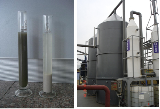 該成果中對(duì)回收硫化物和蛋白質(zhì)的設(shè)備進(jìn)行了創(chuàng)新設(shè)計(jì)和制造,使其具備了良好的密閉性,有效解決了反應(yīng)釜處理量小、造價(jià)高、反應(yīng)釜與攪拌槳之間密封性不好、硫化氫殘留危害操作人員、硫化氫無(wú)法全部轉(zhuǎn)化吸收等難題?;谏鲜鲈O(shè)備開(kāi)發(fā)了浸灰廢液氨氮脫除技術(shù),該技術(shù)是在回收硫化鈉和蛋白質(zhì)之前,先對(duì)浸灰廢液進(jìn)行吹脫處理。